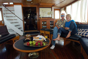 При аренде яхты для Вас: 2 открытых палубы, 2 отдельных салона с баром, ТВ, видео, стереосистема, библиотека.