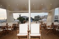 Просторная открытая палуба площадью 200 кв.м предлагает затененную область для обедов на свежем воздухе, бар, а также лежаки и шезлонги. Платформа на корме яхты – очень удобный и легкий способ зайти в море для купания и водных развлечений.